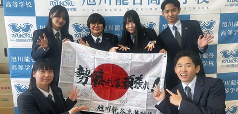 ミラノ・コルティナ冬季オリンピックに出場した本校卒業生の勢藤優花選手が、全競技を終えられました。勢藤選手は、2月7日の女子個人ノーマルヒルで14位、2月15日の女子個人ラージヒルで15位という結果を残されました。大会に先立ち、本校生徒会では大きな日の丸の国旗に全校生徒でメッセージを書き込み、勢藤選手へ応援の寄せ書きを贈りました。一つひとつの言葉に込められた後輩たちの想いは、無事に勢藤選手のもとへ届き、大空を舞う先輩の力になったことと思います。勢藤選手、本当にお疲れ様でした。そして、たくさんの感動をありがとうございました。本校はこれからも、自分自身の限界に挑戦し続ける先輩の姿を応援し続けます。